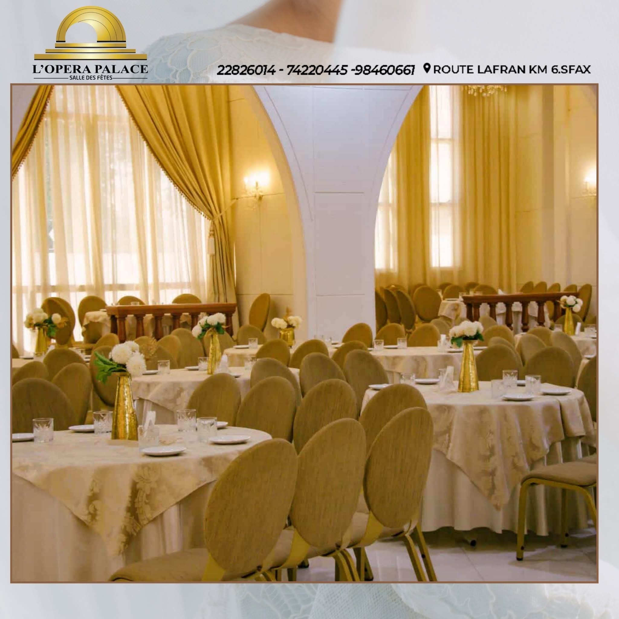 Salle de fêtes élégante idéale pour mariages et grands événements. Ambiance raffinée et espaces spacieux pour célébrer vos moment